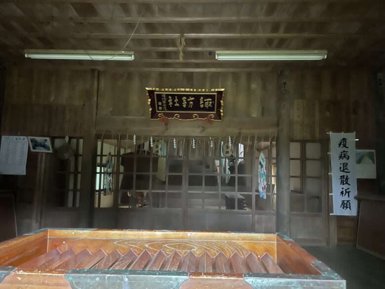 御祭神は建御名方命(たけみなかたのみこと)。諏訪大社と同じ神を祀っており、勝運・縁結び・五穀豊穣・海上安全のご利益があると伝えられています。