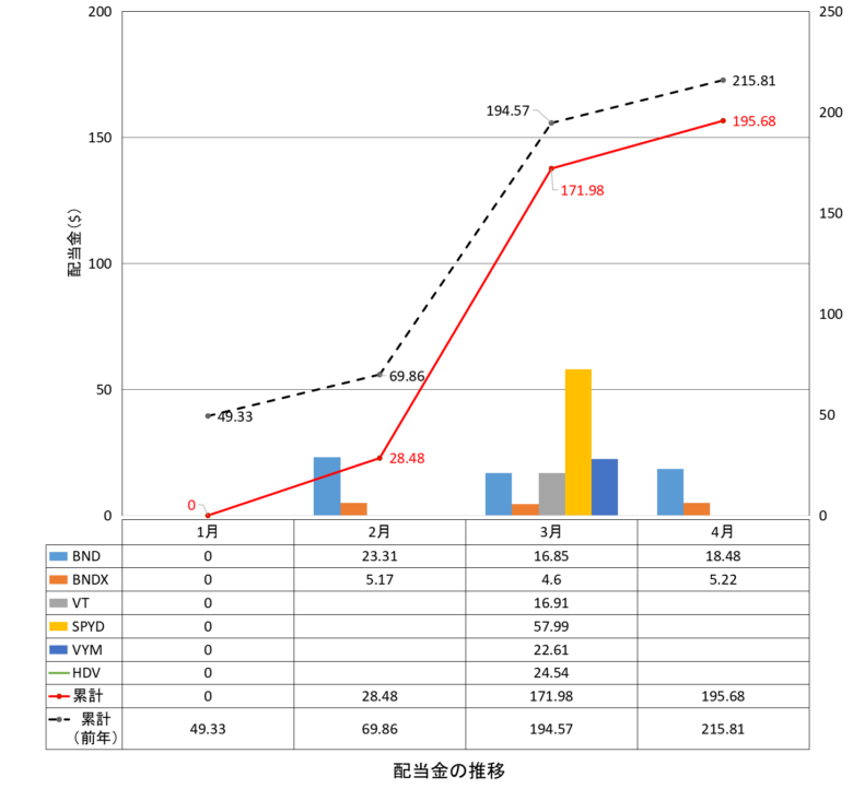 - BND・BNDXの2026年4月配当金額(実績)