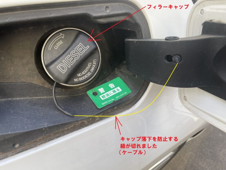 ガソリン車とディーゼル車ではキャップの名称(ディーゼル車には「DIEZEL」と書かれている)が違うので、発注前に確認しましょう。