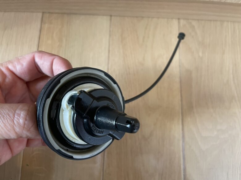 また「フィラーキャップ」の落下を防止する紐には名称はなかったので、本ブログでは「ケーブル」と呼ぶこととします。