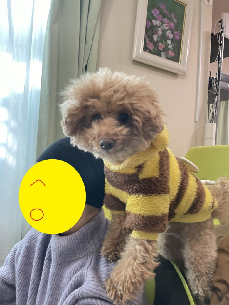 ハチの着ぐるみの空(くう)様は、ママの肩に前足を乗せてドヤ顔です。