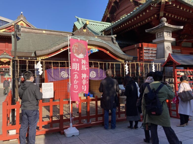 神田明神には神馬(しんめ)がおり、タイミングが合えば神馬を愛でて癒されましょう。