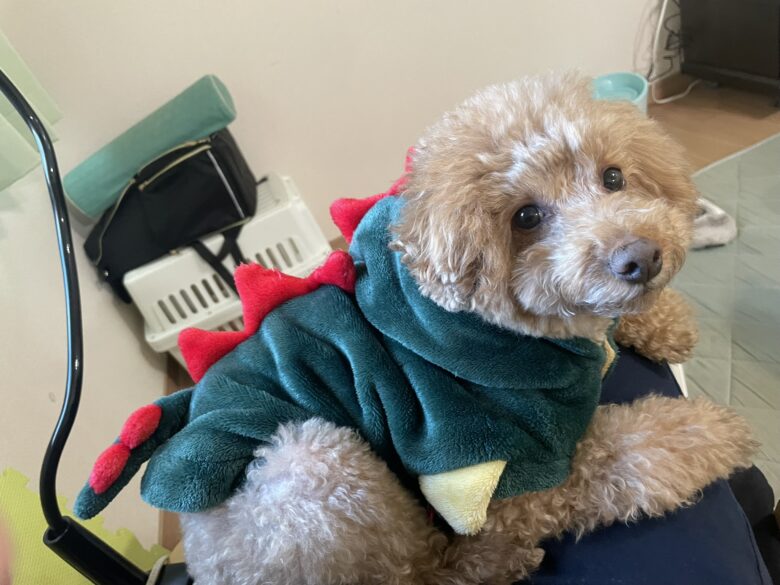 空(くう)様は、2年前に買ってもらった龍の着ぐるみでホカホカです。