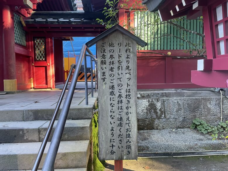 参道の石畳はやや滑りやすいので、小型犬の場合は抱っこが安心です。